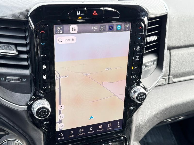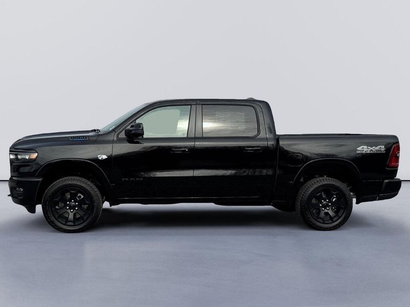 Big enough to tow or haul, the vehicle has the space, power and durability for anyone. This 2026 Ram 1500 has four wheel drive capabilities. Anti-lock brakes will help you stop in an emergency. This Ram 1500 has automated speed control that adjusts to maintain a safe following distance, enhancing highway driving convenience. The gas and brake pedals adjust allowing you to fine-tune them for personal fit and comfort. This unit comes equipped with Android Auto for seamless smartphone integration on the road. Apple CarPlay: Seamless smartphone integration for the Ram 1500 - stay connected and entertained on the go! The vehicle offers Automatic Climate Control for personalized comfort. The high efficiency automatic transmission shifts smoothly and allows you to relax while driving. See what's behind you with the back up camera on it. This unit has an elegant black exterior finish. Maintaining a stable interior temperature in this vehicle is easy with the climate control system. Easily set your speed in the Ram 1500 with a state of the art cruise control system. Increase or decrease velocity with the touch of a button. Electronic Stability Control is one of many advanced safety features on the vehicle. This 1/2 ton pickup has a V8, 5.7L high output engine. This unit's Forward Collision Warning system alerts the driver to potential front-end collisions, enhancing safety. The vehicle is equipped with a gasoline engine. Bluetooth technology is built into it, keeping your hands on the steering wheel and your focus on the road. Keep your hands warm all winter with a heated steering wheel in this 2026 Ram 1500 . The installed navigation system will keep you on the right path. An off-road package is installed on this model so you are ready for your four-wheeling best. The rear parking assist technology on the Ram 1500 will put you at ease when reversing. The system alerts you as you get closer to an obstruction. Start the vehicle from inside with remote start. It is equipped with the latest generation of XM/Sirius Radio.