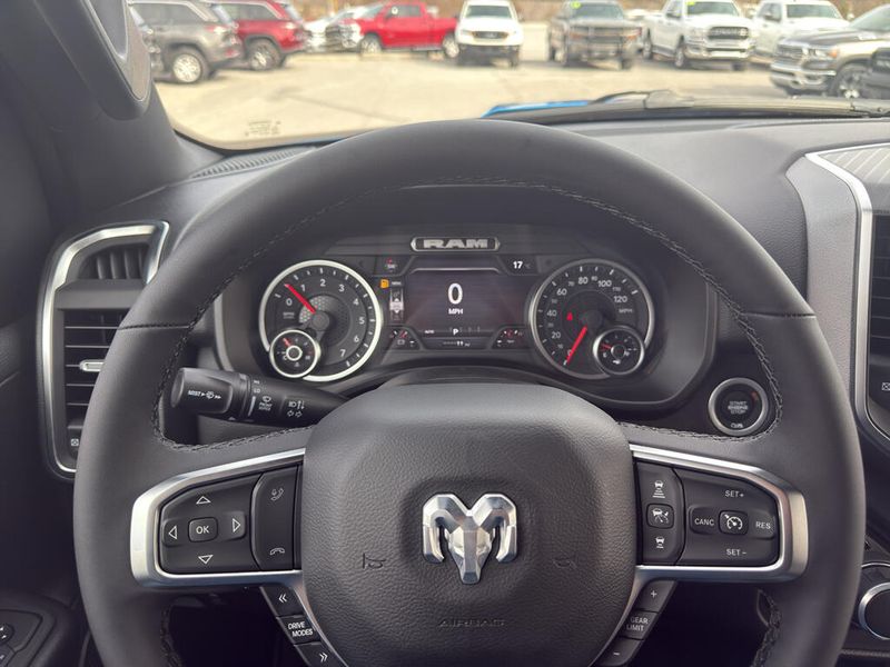 Half ton trucks are the most functional trucks for all purposes. The Ram 1500 has four wheel drive capabilities. This model has auto-adjust speed for safe following. The gas and brake pedals adjust allowing you to fine-tune them for personal fit and comfort. The vehicle comes equipped with Android Auto for seamless smartphone integration on the road. Apple CarPlay: Seamless smartphone integration for this model - stay connected and entertained on the go! This vehicle keeps you comfortable with Auto Climate. This 2026 Ram 1500 has an automatic transmission. See what's behind you with the back up camera on this vehicle. The Ram 1500 shines with an exquisite blue finish. Maintaining a stable interior temperature in this vehicle is easy with the climate control system. The vehicle features cruise control for long trips. The Electronic Stability Control will keep you on your intended path. It has a V8, 5.7L high output engine. This unit has fog lights for all weather conditions. This model's Forward Collision Warning feature alerts drivers to potential front-end collisions. This vehicle is equipped with a gasoline engine. Bluetooth technology is built into this 1/2 ton pickup, keeping your hands on the steering wheel and your focus on the road. This 1/2 ton pickup is pure luxury with a heated steering wheel. You'll never again be lost in a crowded city or a country region with the navigation system on this Ram 1500. The state of the art park assist system will guide you easily into any spot. Start this Ram 1500 from inside with remote start. Greater towing safety becomes standard with the installed trailer brake. This Ram 1500 is equipped with the latest generation of XM/Sirius Radio.