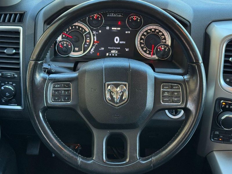 Good News! This certified CARFAX 1-owner vehicle has only had one owner before you. This vehicle features a hands-free Bluetooth phone system. Never get into a cold vehicle again with the remote start feature on the Ram 1500 Classic. with XM/Sirus Satellite Radio you are no longer restricted by poor quality local radio stations while driving the Ram 1500 Classic. Anywhere on the planet, you will have hundreds of digital stations to choose from. Protect the Ram 1500 Classic from unwanted accidents with a cutting edge backup camera system. Apple CarPlay: Seamless smartphone integration for this 1/2 ton pickup - stay connected and entertained on the go! The state of the art park assist system will guide you easily into any spot. This unit comes equipped with Android Auto for seamless smartphone integration on the road. This vehicle keeps you comfortable with Auto Climate. When you encounter slick or muddy roads, you can engage the four wheel drive on it and drive with confidence.