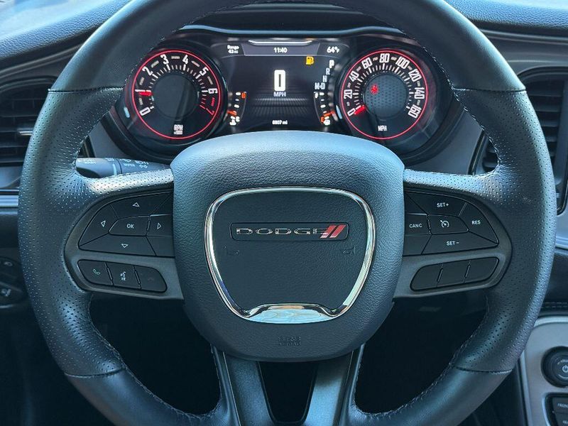 See what's behind you with the back up camera on this Dodge Challenger. This vehicle is a certified CARFAX 1-owner. This 2023 Dodge Challenger is pure luxury with a heated steering wheel. The Dodge Challenger offers Automatic Climate Control for personalized comfort. This vehicle offers Apple CarPlay for seamless connectivity. This vehicle comes equipped with Android Auto for seamless smartphone integration on the road. This Dodge Challenger features a hands-free Bluetooth phone system. It has a clean CARFAX vehicle history report. This mid-size car shines with an exquisite metallic silver exterior finish. This 2023 Dodge Challenger has a V6, 3.6L high output engine. Set the temperature exactly where you are most comfortable in this 2023 Dodge Challenger . The fan speed and temperature will automatically adjust to maintain your preferred zone climate. This 2023 Dodge Challenger is rear wheel drive. Easily set your speed in this model with a state of the art cruise control system. Increase or decrease velocity with the touch of a button.