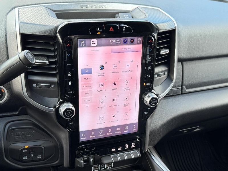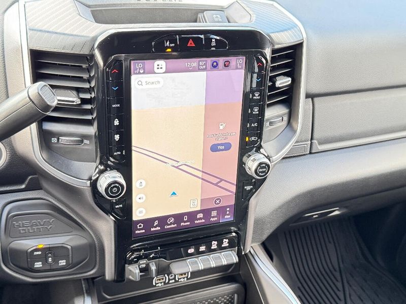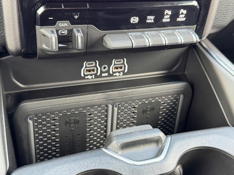 Quick Order Package 27H Laramie. Bed Utility Group. Laramie Level B Equipment Group: Google Android Auto; SiriusXM Radio Service; USB Host Flip; Rear Window Defroster; Blind Spot and Cross Path Detection; Rain Sensitive Windshield Wipers; Integrated Center Stack Radio; ParkSense Front/rear Park Assist with Stop; Rear Power Sliding Window; Integrated Voice Command with Bluetooth; Connectivity - 12" Touchscreen Display; GPS Navigation; 4G LTE Wi-Fi Hot Spot; GPS Antenna Input; Rear Underseat Compartment Storage; SiriusXM with 360L; Global Telematics Box Module; Connected Travel and Traffic Services; Front LED Fog Lamps; LED Reflector Headlamps; Foam Bottle Insert (door Trim Panel); Apple CarPlay; Disassociated Touchscreen Display; HD Radio; Uconnect 5 Navigation with 12.0" Display Radio; Remote Tailgate Release; Harman/kardon 19 Speaker Premium Sound; Auto High Beam Headlamp Control; Electric Shift on Demand Transfer Case; Front Door Accent Lighting; 2nd Row in Floor Storage Bins; Rear Door Accent Lighting. 20" X 9" Premium Paint/polished Wheels. Leather Trimmed Bucket Seats. ParkSense Front/rear Park Assist with Stop. Granite Crystal Met CC. MOPAR Front and Rear Rubber Floor Mats. Rear Underseat Compartment Storage. **Equipment listed is based on original vehicle build and subject to change. Please confirm the accuracy of the included equipment by calling the dealer prior to purchase.**