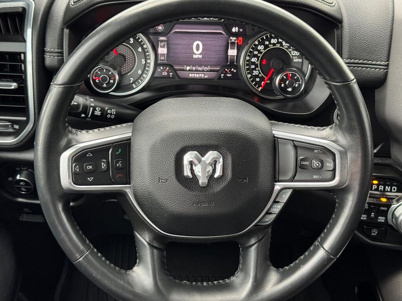 This 1/2 ton pickup is equipped with the latest generation of XM/Sirius Radio. Protect it from unwanted accidents with a cutting edge backup camera system. Apple CarPlay: Seamless smartphone integration for this 2023 Ram 1500 - stay connected and entertained on the go! It features a hands-free Bluetooth phone system. This 1/2 ton pickup has a clean CARFAX vehicle history report. The installed navigation system will keep you on the right path. The leather seats in this 2023 Ram 1500 are a must for buyers looking for comfort, durability, and style. Start this 1/2 ton pickup from inside with remote start. It's Forward Collision Warning feature alerts drivers to potential front-end collisions. This 2023 Ram 1500 comes equipped with Android Auto for seamless smartphone integration on the road. This unit keeps you comfortable with Auto Climate. The rear parking assist technology on the Ram 1500 will put you at ease when reversing. The system alerts you as you get closer to an obstruction.